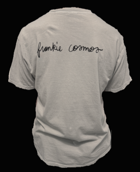 Screen printed on a Comfort Colors tee ("Bay" color, 100% cotton, garment-dyed soft ring spun fabric, relaxed fit). This new design is drawn by Greta in reference to the song One Of Each. The back of the shirt says Frankie Cosmos in Greta's script handwriting from the Different Talking album cover. Printed at Beezer Printing in Brooklyn NY.